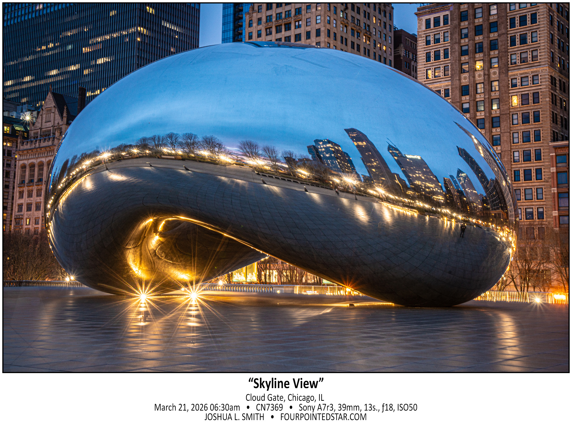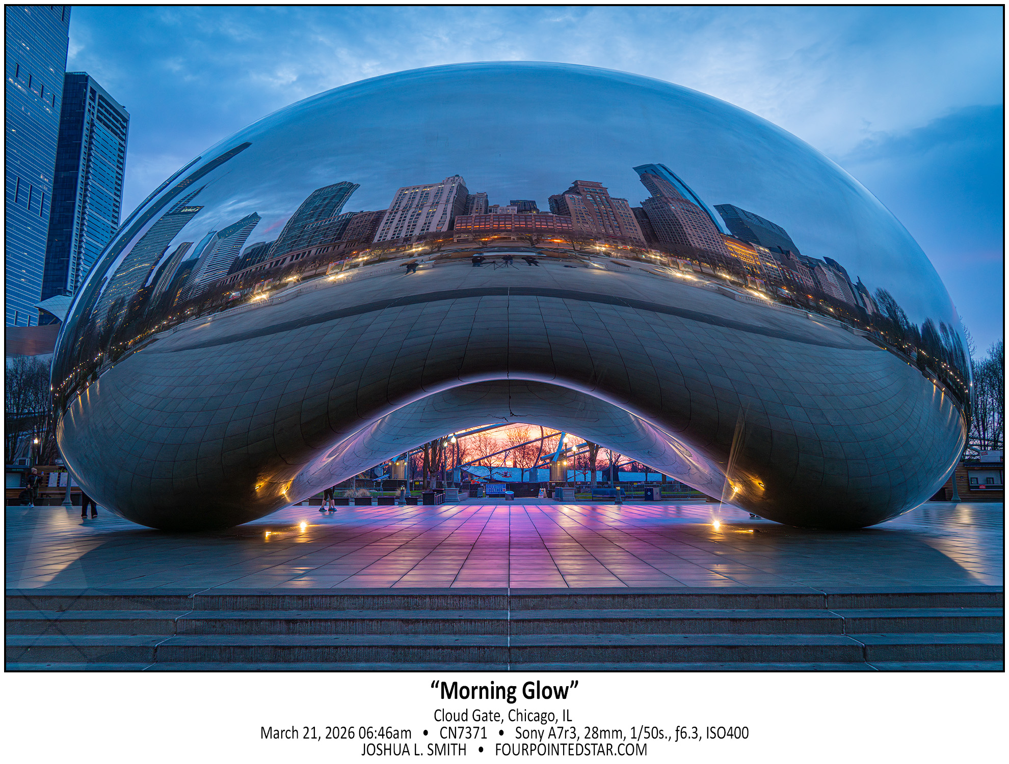 There are three or four days in the spring and fall when the sunrise aligns with the Bean in downtown Chicago.  Back in 2023, I drove downtown twice to capture “Chicago Henge” and ended up with this delightful photo.