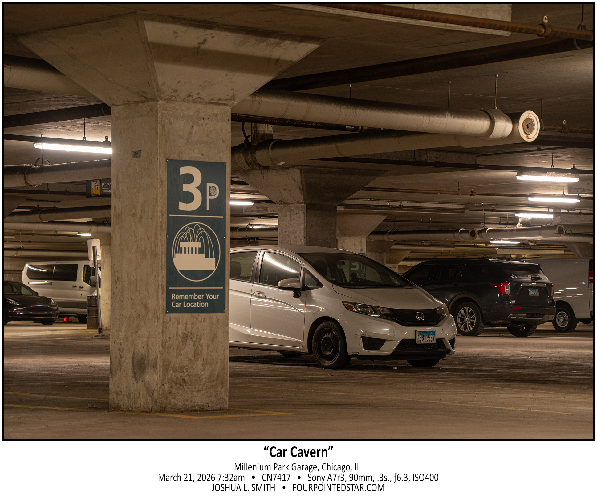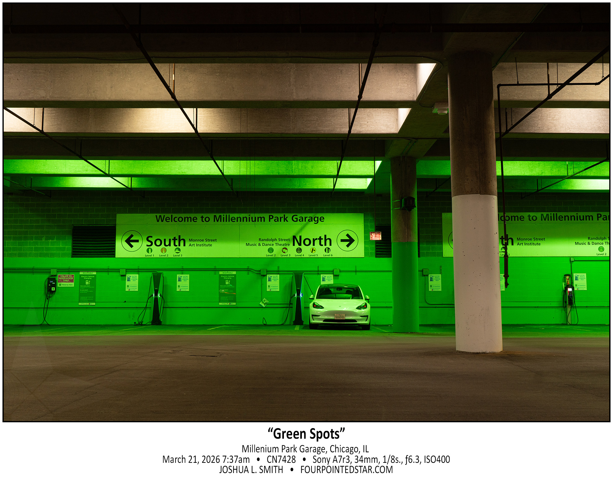 This fantastic oddity was captured from street level, and I just love all of the distortion. I’ve photographed the curved fascade of the building on the corner of Wells & Hubbard a few times, but always from the 4th or 5th floor of the parking garage with light trails in mind.
