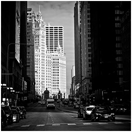 Parking garages offer unique views of Chicago, so anytime that I park in a garage, I walk down the staircase. On my way to visit a client, I saw spotted this puddle’s reflection and in my mind, I wandered off to what I could create with just a boring staircase.